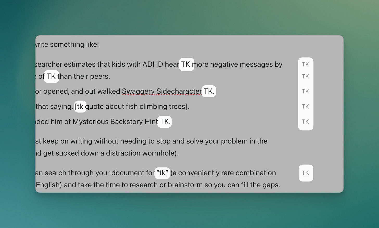 This week I wanted to share a quick writing tip I find myself using all the time, that is especially helpful with ADHD.